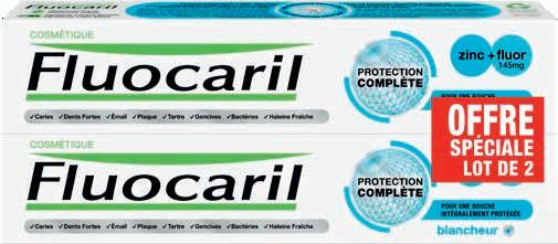 Fluocaril Protection Complète Blancheur 2x75ml protège complètement toute votre bouche et restaure la blancheur naturelle de vos dents.