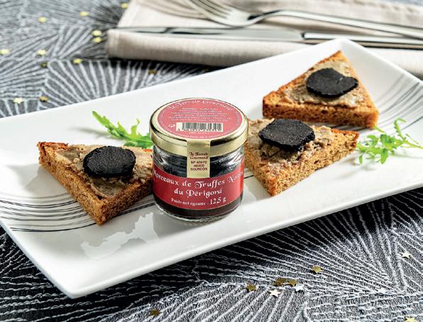 MORCEAUX DE TRUFFES**** NOIRES DU PÉRIGORD(1) “LE TERROIR GOURMAND” ****Tuber Melanosporum. 12,5 g. Le kg : 774,40 €.