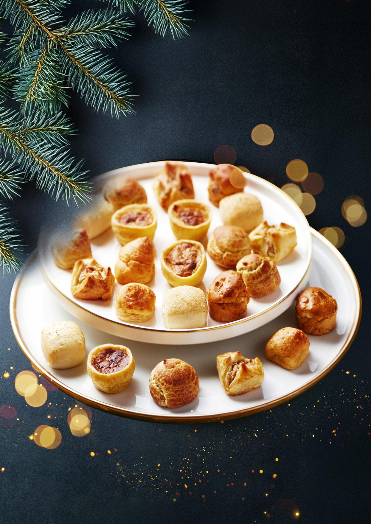 16 GOUGÈRES AU SAUMON DORÉES AU FOUR(2) “MIX BUFFET” 170 g. Le kg : 40,59 €.