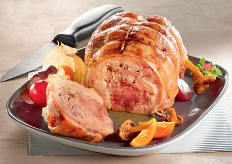 La pièce d’environ 800 g. Également au même prix kg : Farce forestière avec des cèpes ou Farce marrons et raisins blancs.
