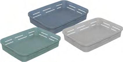 Caisse de rangement pliable et empilable fabriquée en plastique recyclé issu de déchets ménagers.