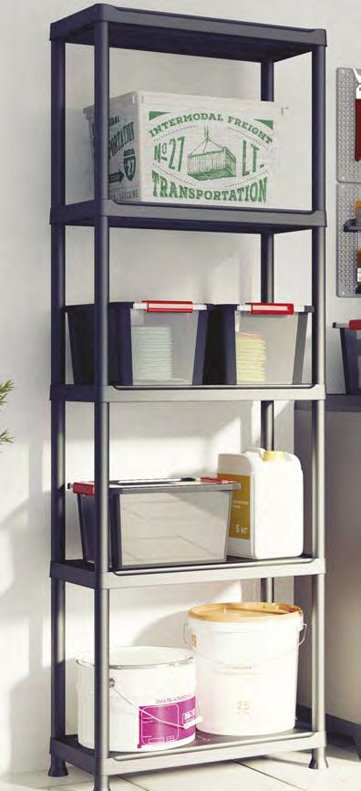 En polypropylène. Dim. : L. 68 x H. 166 x P. 39 cm. Système de blocage et déblocage des tablettes très simple. Porte cadenassable. Poignées de porte bi-matière en forme de moustache, angles biseautés.