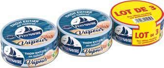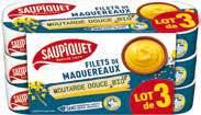 40 LES OFFRES EN PLUS FILETS DE MAQUEREAUX “SAUPIQUET” Moutarde douce bio, Concassé de tomates bio(5), Huile d'olive bio (5) ou Muscadet bio 3 x 120 g (360 g). Le kg : 16,83 €.