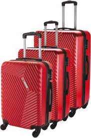 36 € ,50 A PARTIR DE VALISE TROLLEY RIGIDE “RUNNING” “HORIZON” 4 roues double multidirectionnelles. Doublure integrale. 2 poignées de portage. Fermeture zippée standard. Dim : 55 cm, 65 cm ou 75 cm. Coloris : vert mint ou noir. Existe également en bagage à main under seat. au prix de : 20,90 €. Garantie : 2 ans (6) 31 € ,50 A PARTIR DE VALISE ABS “ARTIC” “HORIZON” 4 roues multidirectionnelles. Cadenas à code intégré. Canne télescopique avec bouton push. Fermeture zippée. Dim : 46 cm, 55 cm, 65 cm ou 75 cm. Coloris : jaune. Garantie