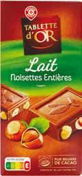 LE LOT DE 3 5€,10 L'UNITÉ 2€,55 TABLETTE DE CHOCOLAT AU LAIT ET NOISETTES “TABLETTE D'OR” 200 g. Le kg :