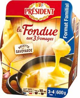 20 LA CRÉMERIE À PRIX E.LECLERC L’OVALE EXTRA FONDANT(2) “PRESIDENT” 31% Mat. Gr.(5) Au lait pasteurisé de vache. 200 g. Le kg : 12,50 €. Par 2 (400 g) : 3,50 € au lieu de 5 €. Le kg : 8,75 € 2,50 LE 2e PRODUIT 1€ LE VIEUX PANÉ(2) “VIEUX PANE” 31% Mat. Gr.(5) Au lait pasteurisé de vache. Le lot de 2 x 200 g (400 g) -50% sur le second dans ce lot. Le kg : 10,63 € 4 € ,25 PLANTA FIN CUISSON PRATIQUE FORMAT FAMILIAL(4) “PLANTA FIN” 750 ml. Le L : 4,47 €. Par 2 (1,5 L) : 5,02 € au lieu de 6,70 €. Le L : 3,35 € LE 1er PRODUIT 3€,35 LE 2e PRODUIT 1€,67 SUR LE 2e PRODUIT ACHETÉ -50% RACLETTE NATURE(2) “RICHEMONTS” 26% Mat. Gr.(5) Au lait pasteurisé de vache. 450 g. Le kg : 10,89 €. Également disponible au même prix en fumé et poivre.(6) 4 € ,90 LA FONDUE AUX 3 FROMAGES(2) 15% MAT.GR.(5) “PRÉSIDENT” Au lait pasteurisé de vache. 600 g. Le kg : 6,38 €. 5€,47(1) 3€,83 - 30 % LOT DE 2 SOCIÉTÉ CRÈME 23% MAT.GR.(5)(2) Au lait pasteurisé de brebis. 2 x 100 g (200 g). Le kg : 15,30 €. Par 2 (400 g) : 4,28 € au lieu de 6,12 €. Le kg : 10,70 €. LE 1er PRODUIT 3€,06 LE 2e PRODUIT 1€,22 - 60 % SUR LE 2e PRODUIT ACHETÉ (2) ORIGINE FRANCE (3) TRANSFORMÉ EN FRANCE (5) % de Mat. Gr. sur produit fini. (6) Voir détails en points de vente. (1) Prix conseillé par la coopérative aux points de vente participant à l'opération commerciale. - 60 % SUR LE 2 e PRODUIT ACHETÉ (4) ORIGINE POLOGNE