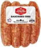 14 LA CHARCUTERIE À PRIX E.LECLERC (1) ORIGINE FRANCE (2) TRANSFORMÉ EN FRANCE (1) Prix conseillé par la coopérative aux points de vente participant à l'opération commerciale.MÉDAILLONS DE PORC FUMES AU FROMAGE(2) “MAÎTRE JACQUES” La barquette de 4 pièces. 250 g. environ. 9 € ,45 LE KG RÔTI DE PORC COMTÉ, OIGNONS, MOUTARDE(2) “MAÎTRE JACQUES” Également disponible au même prix : Butternut et oignons ou chou vert, pomme de terre et carotte. 10 € ,65 LE KG SAUCISSES FUMÉES(1) “MAÎTRE JACQUES” La barquette de 4 pièces de 75 g (300 g). Le kg : 8,97 €. 2 € ,69 PALETTE DE PORC FUMÉ(1) “MAÎTRE JACQUES” 7 € ,50 LE KG JARRET DE PORC FUMÉ(1) “MAÎTRE JACQUES” 6 € ,25 LE KG RÔTI DE FILET DE PORC FUMÉ(1) “MAÎTRE JACQUES” 7 € ,75 LE KG (3) Voir détails en points de vente.