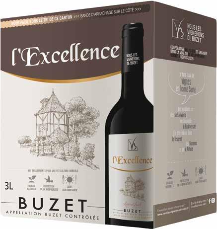 28 LES BOISSONS À PRIX E.LECLERC (1) Prix conseillé par la coopérative aux points de vente participants à l’opération commerciale. (2) AOP : Appellation d’Origine Protégée. (3) AOC : Appellation d’origine Controlée. (4) Bag In Box® Fontaine à vin qui préserve les qualités du vin jusqu’à 6 semaines après ouverture. L'ABUS D'ALCOOL EST DANGEREUX POUR LA SANTÉ. À CONSOMMER AVEC MODÉRATION. LA LOI INTERDIT LA VENTE D'ALCOOL AUX MINEURS. DES CONTRÔLES SERONT RÉALISÉS EN CAISSE. AOP(2) BUZET ROUGE “L'EXCELLENCE” Le BAG IN BOX®(4) de 3 L. 13% vol. Le L : 2,84 €. Existe aussi : Rosé. 12€,19 (1) 8€,53 - 30 % léger prononcé PERSONNALITÉ FRUIT puissant léger AOP(2) BORDEAUX ROUGE “CHÂTEAU LA CASTILLONNE” 2020 75 cl. Le L : 3,20 €. 2 € ,40 AOC(3) MUSCADET CÔTES DE GRAND LIEU SUR LIE “CHÂTEAU BAGATELLE” 2021 75 cl. Le L : 4,67 €. 3 € ,50 VIN MOUSSEUX PRESTIGE BLANC BRUT MÉTHODE TRADITIONNELLE “PAUL ROBIN” 75 cl. Le L : 4 € AOP(2) CÔTES DE BOURG “CHÂTEAU MOULIN DE MAUBRAS” 2020 75 cl. Le L : 3,93 €. 2 € ,95 léger prononcé PERSONNALITÉ FRUIT puissant léger léger prononcé PERSONNALITÉ FRUIT puissant léger léger prononcé moelleux sec PERSONNALITÉ FRUIT léger prononcé doux sec PERSONNALITÉ FRUIT AOC(3) MADIRAN ROUGE “TERROIRS DE TILHET” 2018 75 cl. Le L : 5,19 €. léger prononcé PERSONNALITÉ FRUIT puissant léger 5€,90 (1) 3€,89 - 34 % AOP(2) CÔTES DU RHÔNE ROUGE VIEILLES VIGNES “MARQUIS D’ARLANDES” 2019 75 cl. Le L : 4,80 €. léger prononcé PERSONNALITÉ FRUIT puissant léger 5€,45 (1) 3€,60 - 34 % 4€,29 (1) 3€ - 30 %