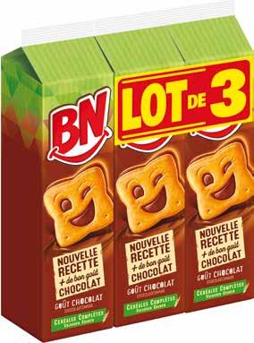 23 L’ÉPICERIE SUCRÉE À PRIX E.LECLERC FRUITS EN MORCEAUX PLAISIR DE FRUITS “SAINT-MAMET” Pêche poire ananas ou Pêche ananas kiwi. Poids net égoutté : 475 g. Le kg : 6,29 €. Par 2 (950 g) : 3,95 € au lieu de 5,98 €. Le kg : 4,16 €. LE 1er PRODUIT 2€,99 LE 2e PRODUIT 0€,96 - 68 % SUR LE 2 e PRODUIT ACHETÉ SUCRE VANILLÉ ET LEVURE CHIMIQUE “VAHINÉ” 130 g. Le kg : 15,77 € Par 2 (260 g) : 2,71 € au lieu de 4,10 €. Le kg : Également10,42 €.disponible en variété Sucre vanillé Madagascar et levure chimique (92,5 g.) (le kg : 22,16 €). LE 1er PRODUIT 2€,05 LE 2e PRODUIT 0€,66 - 68 % SUR LE 2e PRODUIT ACHETÉ BISCUITS FOURRÉS “BN” Goût chocolat, Goût fraise ou Mixte 3 x 285 g (855 g). Le kg : 4,16 €. Par 3 (2,565 kg) : 7,12 € au lieu de 10,68 €. Le kg : 2,78 €. LE LOT DE 3 7€,12 L'UNITÉ 3€,56 2+1 OFFERT BISCUITS AU CHOCOLAT AU LAIT “DÉLICHOC” 1,8 kg. Le kg : 5,86 €. 15€,99 (1) 10€,55 - 34 % BOÎTES HAPPY'BOX “HARIBO” 2 x 600 g + 600 g offerts (1,8 kg). Le kg : 3,64 €. 6€,55 CHOCOLATS LINDOR “LINDT” Lait, 70% cacao ou Assorti 237 g. Le kg : 24,89 €. Par 2 (474 g) : 7,79 € au lieu de 11,80 €. Le kg : Également16,43 €.disponible en variétés Boîte cœur lait ou Boîte cœur assorti (200 g.) (le kg : 29,50 €). LE 1er PRODUIT 5€,90 LE 2e PRODUIT 1€,89 - 68 % SUR LE 2e PRODUIT ACHETÉ