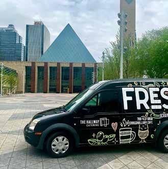 In March 2024, the Hallway Cafe and Takeaway’s van got a face lift thanks to graphic designer Valerie of Pixels and Relish. This updated look and feel was co-created by the youth, whose words of “awesome,” “vibrant” and “something that really stands out, you know?” shaped the concept. Youth voted and approved the final design.
