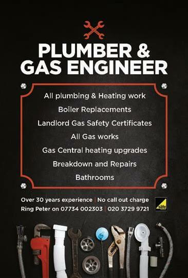 ROBERT’S QUALITY PLUMBING & HEATING SERVICES North Chingford, E4 Over 30 years experience All plumbing & heating work Breakdown and repairs Gas central heating upgrades Boiler replacements Landlord safety certificates IPHE REGISTERED 194462 020 8529 1489 07802 952005 DIGITAL & SATELLITE DIGITAL TV & DAB RADIO AERIALS FREEVIEW MULTI-ROOM SYSTEMS PLASMA & LCD TV REPAIRS TUNING & WALL MOUNTING SERVICE CITY & GUILDS QUALIFIED FREE ESTIMATES Call Kevin 07928 004 259 replacement window and doors repairs to hinges, handles, locks misted/broken glass units replace repair maintain Glazing Maintenance services Mervyn J Lynch 020 8529 8020 answerphone / 07973 522 525 direct info@glazingmaintenanceservices.com www.glazingmaintenanceservices.com
