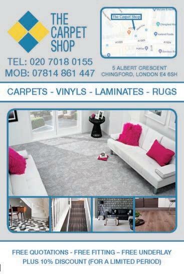 11 January & February 2023 Inside Magazine, Chingford and Highams Park FREE QUOTATIONS - FREE FITTING - FREE UNDERLAY PLUS 10% DISCOUNT (FOR A LIMITED PERIOD) www.tcs-chingford.co.uk