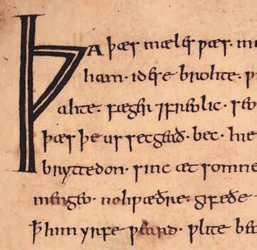 During the 14th century, the letter ‘thorn’ decreased in its use, as more and more people wrote ‘th’. At the same time, ‘thorn’ was written less accurately, with the top of the flagpole disappearing, and ‘thorn’ became indistinguishable from ‘p’.