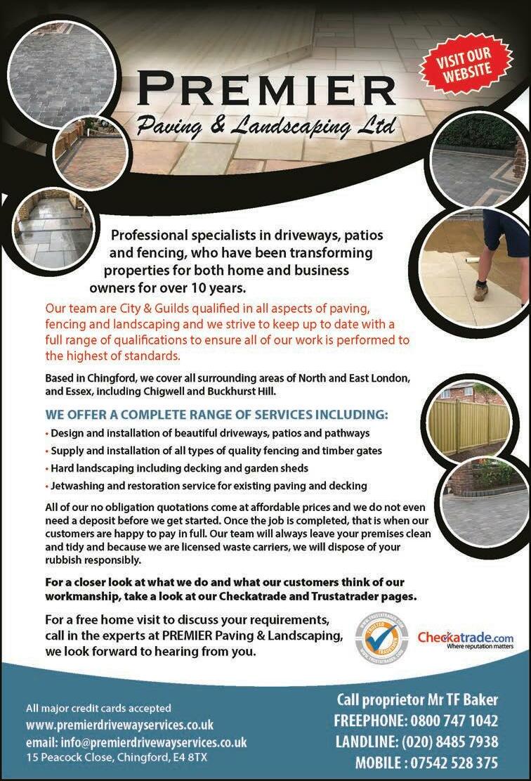 24 January & February 2023 Inside Magazine, Chingford and Highams Park Review of the Year (answers on page 26) 26 Years Experience | References always available Special rates for Senior Citizens Costas Petrou Mobile: 07850 103 357 Tel/Fax: 020 8529 9246 Pipers Moon, Daws Hill, Chingford, E4 7RD FREE Estimates Residential & Commercial CP Building Contractors & Roofing Services INSURANCE WORK UNDERTAKEN No Job Too Small Plastering, Kitchens, Electrical, Fencing Fully insured New Roofs, Roof Repairs, Flat Roofs, Torch Felting Guttering, UPVc Facias & Soffits High Standard of Workmanship