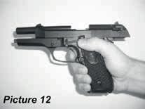 Simply press the slide release latch to release the slide and load the chamber (PICTURE 13).