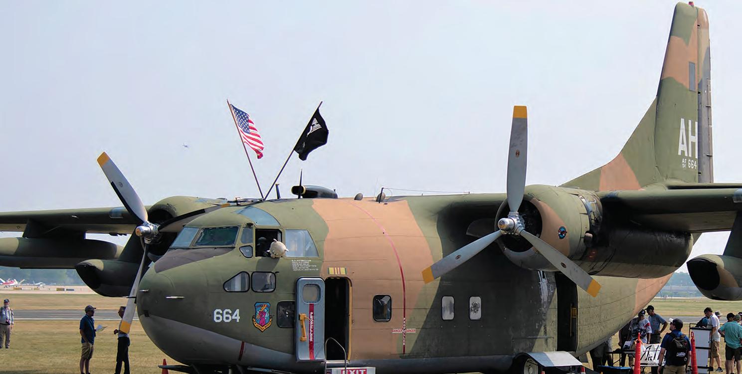 FIFTY YEARS AGO, in March 1973, U.S. military forces officially withdrew from South Vietnam after eight long years of conflict. This year at EAA AirVenture Oshkosh 2023, we’re honoring the aircraft and veterans of the Vietnam War. If you take a stroll out to the Warbirds area, you’ll see a number of Hueys, Skyraiders, and other aircraft of the era. Parked on the far northern end of Warbirds is a rare sight — a C-123 Provider, believed to be one of the few, if not the only one, still flying.