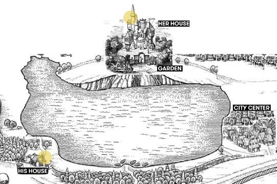 The rain is falling heavy every one is under the sound of the rain. But there are two person there that not hear any surroundings sound. He wont waste the time even a bit so he ask her name. Where did her came from, can we have more time. Finally they find out that there house was in the opposite of each other and she tell him that if he see the light from the too floor window of her house means he can come to meet her in the garden. But you have 2 hours counting since you see the light. The distance to go round the lake will take him more than 2 hours and he cant come be the boat because someone gonna see him too. He dont know what to do.