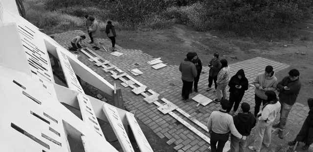 Las piezas que se exhiben aquí son construcciones colectivas hechas en diversas travesías. Nueve maquetas a escala 1:5 dispuestas sobre plintos, los que fueron diseñados por estudiantes para la ocasión.