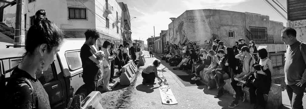 Las imágenes que componen el collage en las páginas siguientes pertenecen al registro de la deriva urbana llevada a cabo en Valparaíso, el 11 de abril de 2023, a cargo del arquitecto Francesco Careri. Agradecemos el aporte fotográfico de Vicente Acuña, Emanuela di Felice, Eva Monteiro y Manuel Sanfuentes.