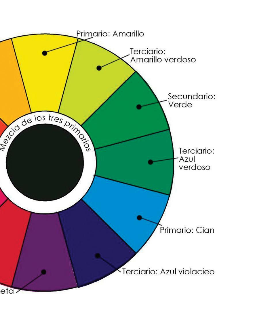 El círculo cromático suele presentarse como una rueda dividida en doce partes. Los colores primarios se colocan de modo que uno de ellos esté en la porción superior central y los otros dos en la cuarta porción a partir de esta, de modo que si unimos los tres con unas líneas imaginarias formarían un triángulo equilátero con la base horizontal. Entre dos colores primarios se colocan tres tonos secundarios de modo que en la porción central entre ellos correspondería a una mezcla de cantidades iguales de ambos primarios y el color más cercano a cada primario sería la mezcla del secundario central más el primario adyacente. Los círculos cromáticos actuales utilizados por los artistas se basan en el modelo CMYK, si bien los colores primarios utilizados en pintura difieren de las tintas de proceso en imprenta en su intensidad. Los pigmentos utilizados en pintura, tanto en óleo como acrílico y otras técnicas pictóricas suelen ser el azul de ftalocianina (PB15 en notación Color Index) como cian, el magenta de quinacridona (PV19 en notación Color Index) y algún amarillo arilida o bien de cadmio que presente un tono amarillo neutro (existen varios pigmentos válidos o mezclas de ellos utilizables como primarios amarillos). Varias casas poseen juegos de colores primarios recomendados que suelen venderse juntos y reciben nombres especiales en los catálogos, tales como «azul primario» o «rojo primario» junto al «amarillo primario», pese a que ni el azul ni el rojo propiamente dichos son en realidad colores primarios según el modelo CMYK utilizado en la actualidad.