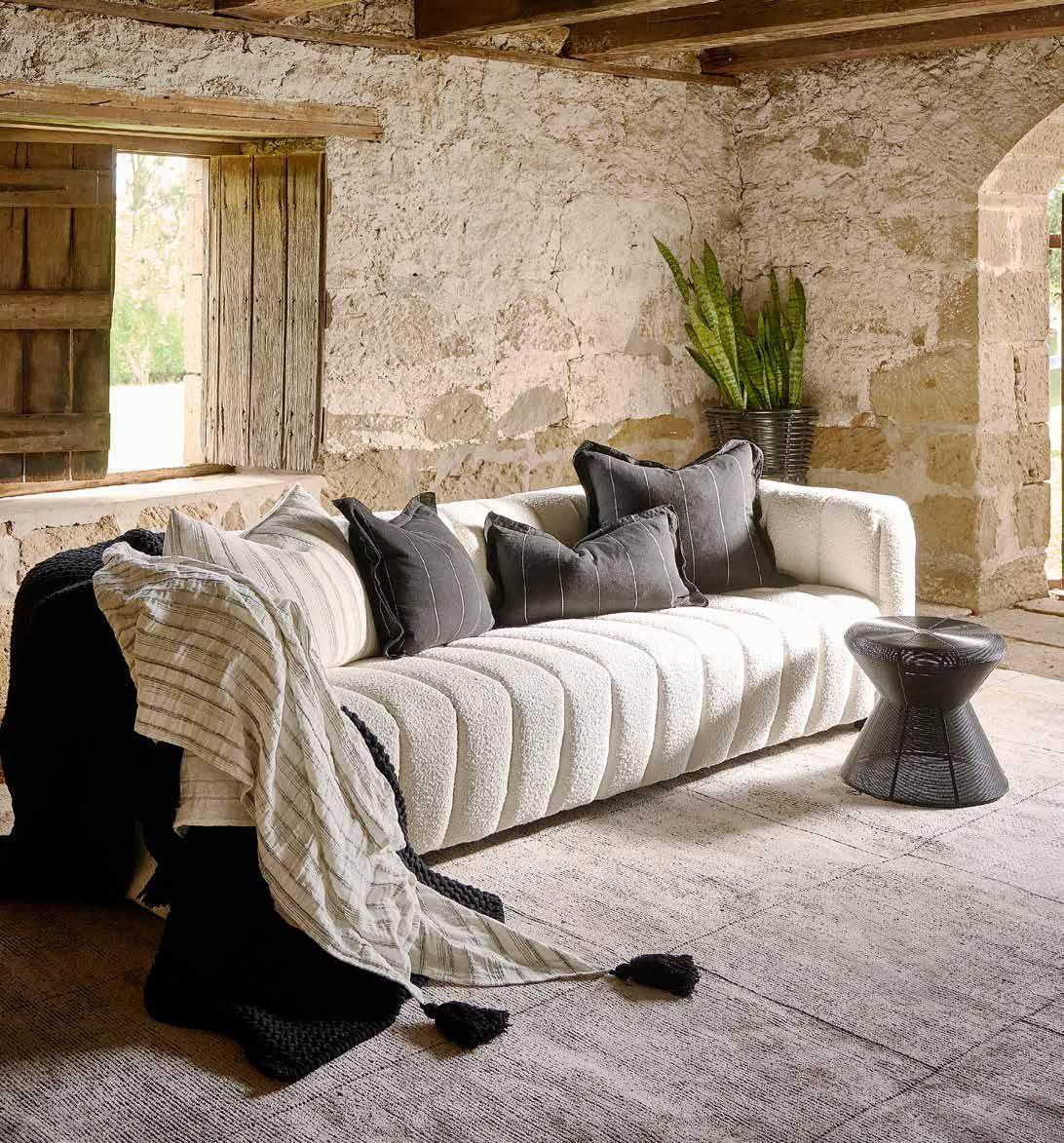 Our beautiful Marco series; deluxe, chunky, highly texturised cushions, throws and bath mats that ooze sophistication and wrap you in a comforting hug. We celebrate our beloved Carter series, now available in Natural and Black. There’s a number of beautiful new accent cushions including Petra, Chia and Amay (to name a few), each with their own story to tell through texture, weave and detailed finishes.