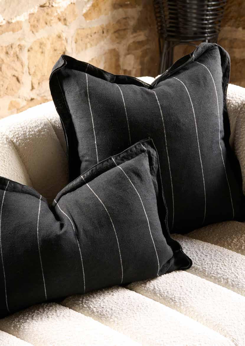 100% Linen with Hand Embroidered Stitch Feature. Colour: Black Cushions: 40x60, 50x50cm, 60x60cm