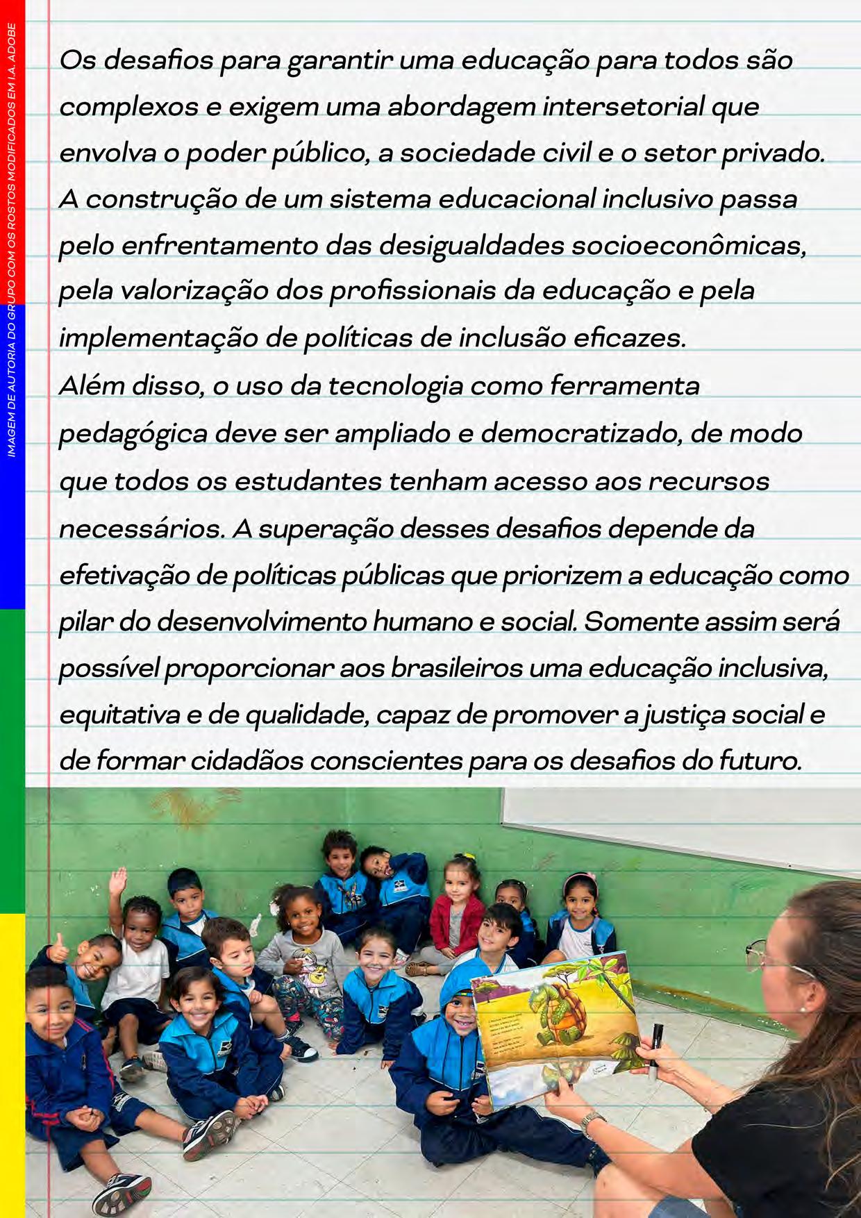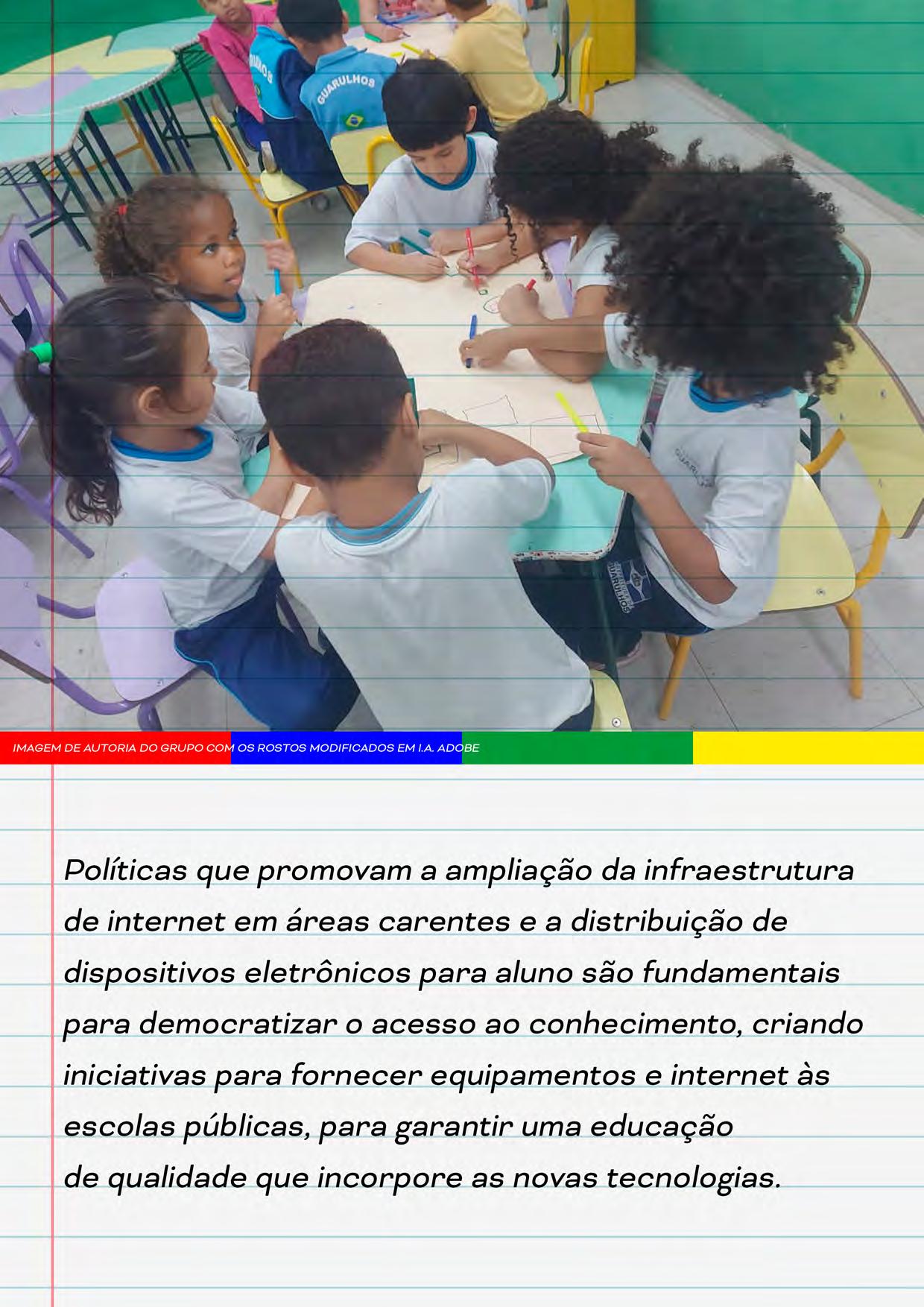 Apesar disso, iniciativas governamentais e parcerias públicoprivadas têm mostrado potencial para transformar esse cenário. Programasquelevaminternetdequalidade,renovambibliotecas e incentivam a sustentabilidade estão em curso em várias partes dopaís.