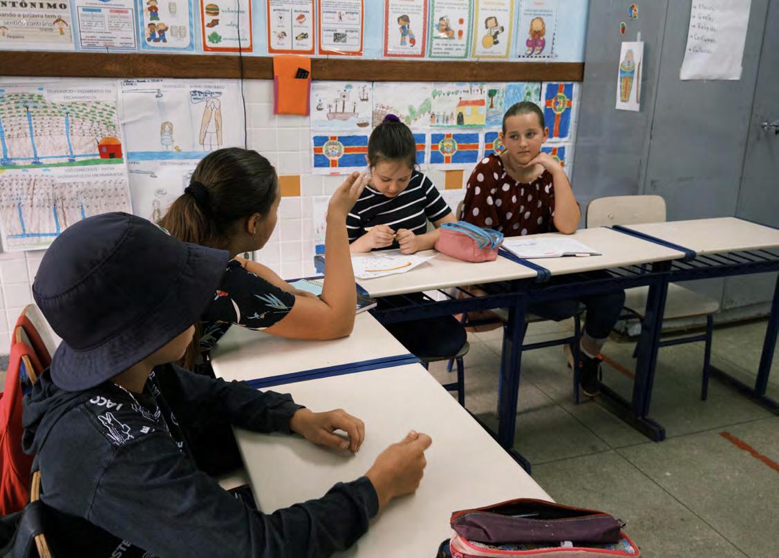 Por outro lado, escolas em regiões maisprivilegiadascontamcomuma série de vantagens que ampliamas oportunidades de aprendizado. A tecnologia,frequentementeacessada pormeiodecomputadores,tabletse internetdealtavelocidade,éutilizada para facilitar a pesquisa, o desenvolvimento de habilidades digitaiseatémesmoparapromover experiências imersivas de aprendizado.