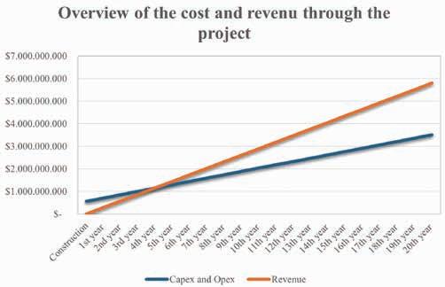 The GeoAndes team developed a cost model initially assuming 20 Mtpa injection with 56 offshore wells. Based on Smith et al. (2021) and Mohamadi-Baghmolaei et al. (2025), estimated Capex is $964 million and Opex ~$67 million/yr, yielding an IRR >18% and a levelised storage cost of ~$83/tCO2 (Table 4). Due to pressure and injectivity constraints, the injection rate was revised to ~2.6 Mtpa, and cash-flow analyses were performed for a baseline case and 56 and 100-well scenarios, consistent with dynamic modelling results.