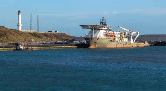 Boka Atlantis, an offshore support vessel berthed in the new part of Aberdeen Harbour.