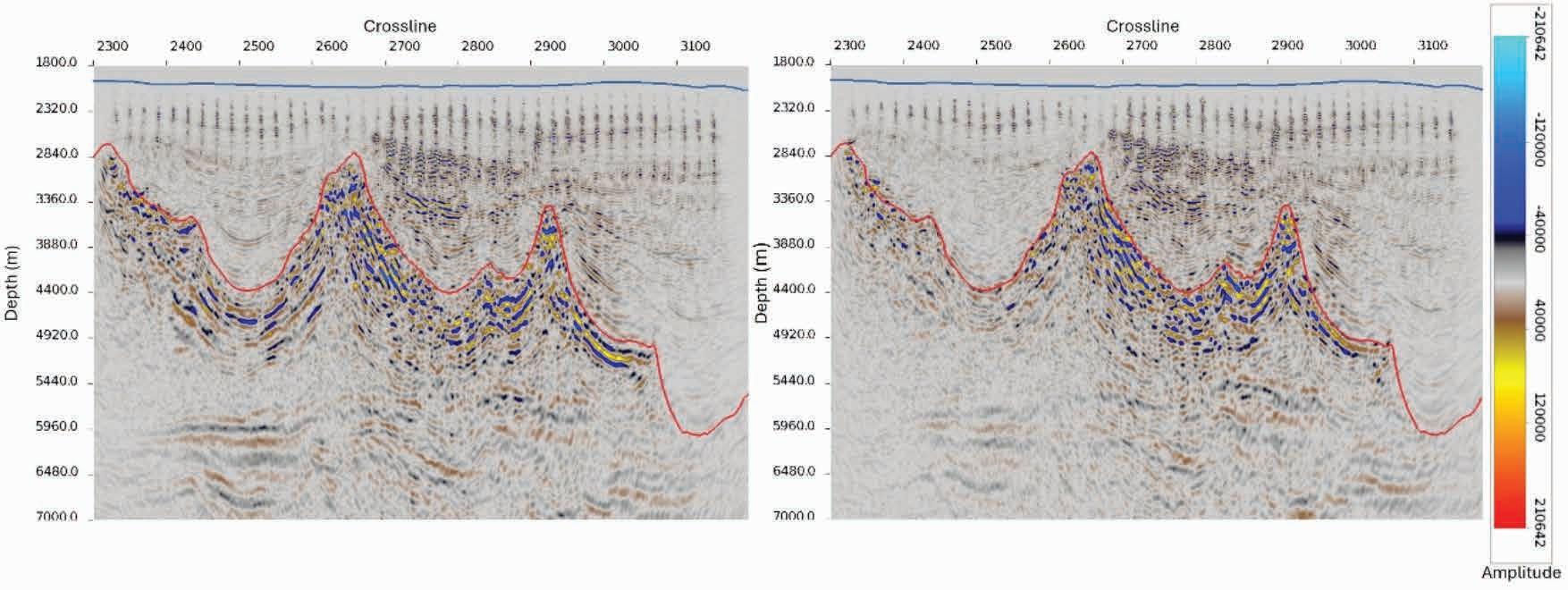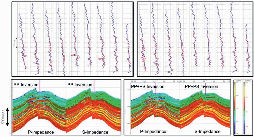 low-frequency modelling, enhance subsurface imaging and inversion accuracy. The integration of PS data, which is less impacted by gas-related attenuation, leads to more accurate porosity predictions and improved reservoir modelling. A two-stage event registration process, utilising a laterally and vertically varying Vp/ Vs ratio, ensures precise PP-PS alignment, while Knott-Zoeppritz approximations further refine inversion reliability. By overcoming gas cloud imaging limitations, joint inversion provides clearer reservoir imaging, better hydrocarbon identification, and reduced exploration risks. Additionally, multi-well wavelet extraction and