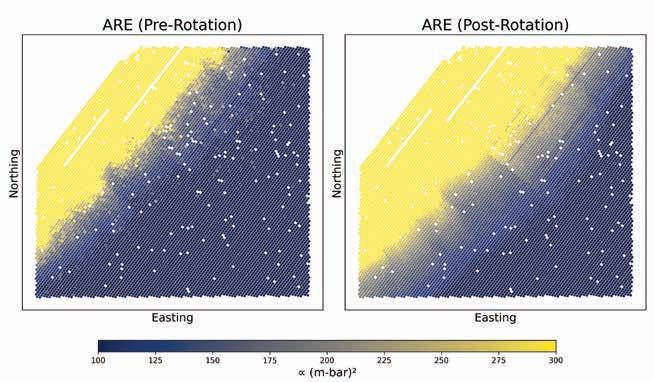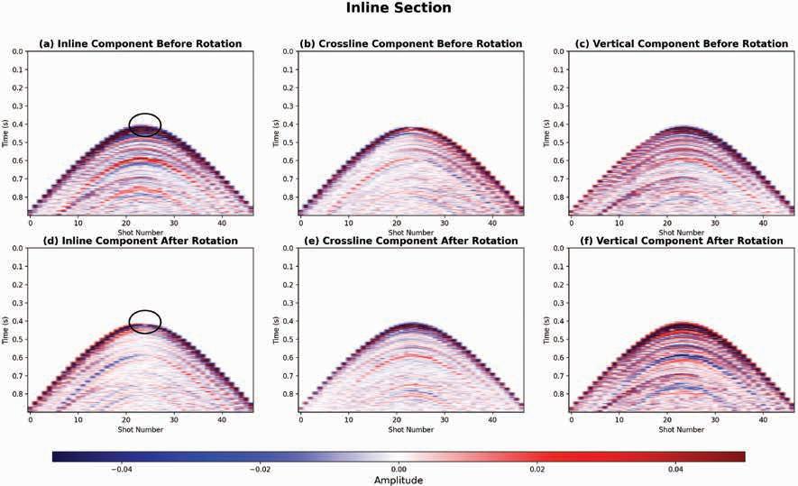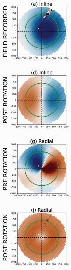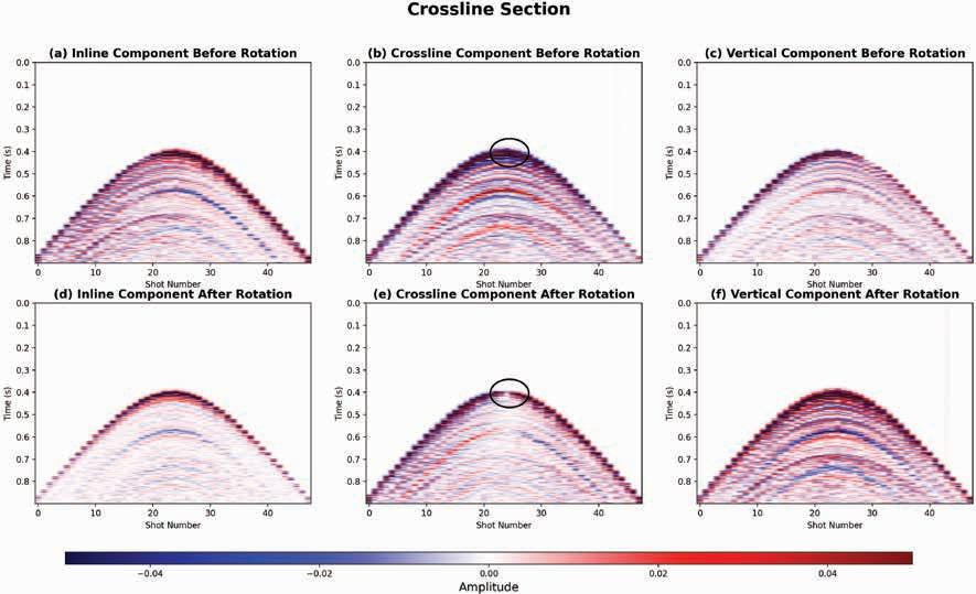 Conventional PS data processing closely follows PP processing but there are several unique steps which require specialised tools and workflows, in particular: Orientation and rotation, S-wave statics, S-wave splitting, demultiple, Vs model-building, and PP-PS event registration. Imaging algorithms also need to be adjusted to consider the asymmetric PS ray path. Noise content in PS gathers can be quite different from P-wave data. For example, while (offshore) PP data is often dominated by multiple energy, PS data can also contain strong energy from complex mode conversions, as well as noise and distortions related to coupling and the near surface. If present, S-wave splitting can further distort the signal. S-wave splitting in most rocks is caused by micro-cracks or crack-like deformations aligned in the direction of maximum compressional stress. As a first order approximation, S-waves travelling through such rocks split into two semi-perpendicular polarisations, the so-called fast (S1) and slow (S2)-waves (see for example Gaiser, 2016). Local stress, and therefore magnitude and orientation of S-wave splitting, can vary with depth due to the sediment’s depositional history and/or a present dynamic stress regime. S-wave splitting experienced along the ray path must be reversed (e.g., Boiero and Bagaini, 2019), either by a pre-migration correction or within the migration algorithm. Otherwise, the frequency content and overall quality of the final image can be severely compromised. As a side product, this process yields a 3D S-wave splitting field containing information about the local stress and state and crack density (Olofsson et al, 2003). A fundamental limitation of conventional PS processing and imaging are the inherent assumptions made in the Radial/Transverse rotation and processing of the Radial component only: The rotation itself is based on the surface source-receiver azimuth (basically assuming a 1D earth) while lateral heterogeneities in the velocity model can cause additional signal loss into the Transverse component. Such limitations will only be overcome when moving to a full physics multi-component elastic FWI workflow.