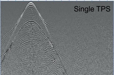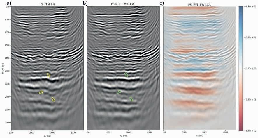 For PS data imaging, acoustic Kirchhoff and Reverse Time Migration (RTM) algorithms can be used, adapted for different propagation velocities from the conversion point to the receiver positions. The RTM algorithm has proven to be suitable for handling complex data, as previously anticipated. Salt domes and