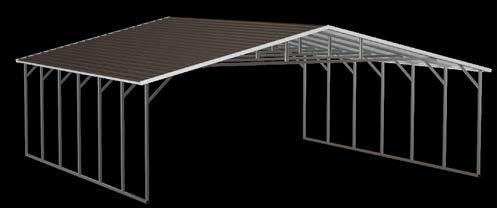 Standard carport features include the following: 14 gauge galvanized steel framing, 29 gauge metal roofing with 20 year Beckers paint system, framing spaced 5’ on center. Includes both peak and leg braces for additional strength and stability. Concrete Anchors or Rebar Anchors, and Earth Auger Anchors included in base price. Eagle Carports, Inc. is not responsible for stopping, or repairing leaks under base rails. Base leg height is 6’ tall. Please note: Eagle Carports, Inc. does not provide site work. Customers are required to contact local building/zoning departments about codes for permitting purposes before order finalization. *Alabama orders requiring higher loads will incur additional site-specific drawings. **Illinois will require modified generic drawings. STANDARD FEATURES