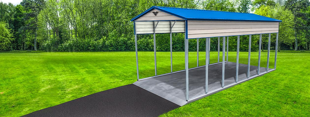 RV carports features include the following: 14 gauge galvanized steel framing, 29 gauge metal roofing with 20 year Beckers paint system, framing spaced 5’ on center, double base rail, double legs, includes both peak and leg bracing for additional strength and stability. Concrete Anchors or Rebar Anchors, and Earth Auger Anchors included in base price. Base leg height is 12’ tall. Please note: Eagle Carports, Inc. does not provide site work. Customers are required to contact local building/zoning departments about codes for permitting purposes before order finalization. *Alabama orders requiring higher loads will incur additional site-specific drawings. **Illinois will require modified generic drawings.