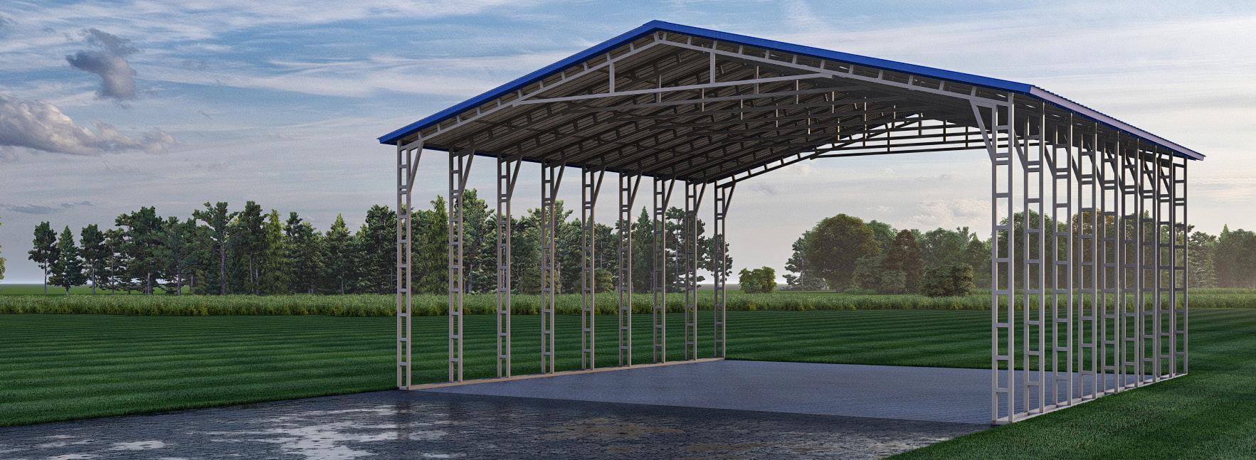 Commercial grade features include 14 gauge galvanized steel truss system with industry leading tubular knee bracing, 29 gauge metal roofing with 20 year Beckers paint system, framing spaced 5’ on center, and concrete anchors are included in base price. Eagle Carports, Inc. is not responsible for stopping, or repairing leaks under base rails. Base leg height is 8’ tall. Please note: Eagle Carports, Inc. does not provide any site work. Truss design may vary slightly (from picture above). Customers are required to contact local building/zoning departments about codes for permitting purposes before order finalization. *Alabama orders requiring higher loads will incur additional site-specific drawings. **Illinois will require modified generic drawings.