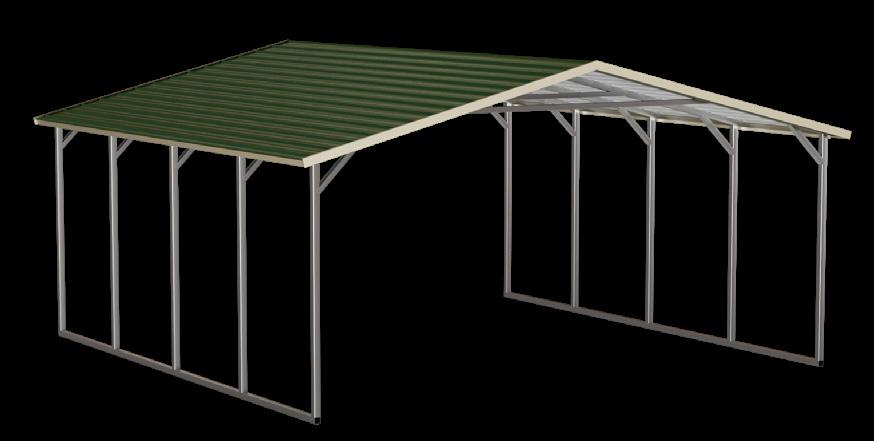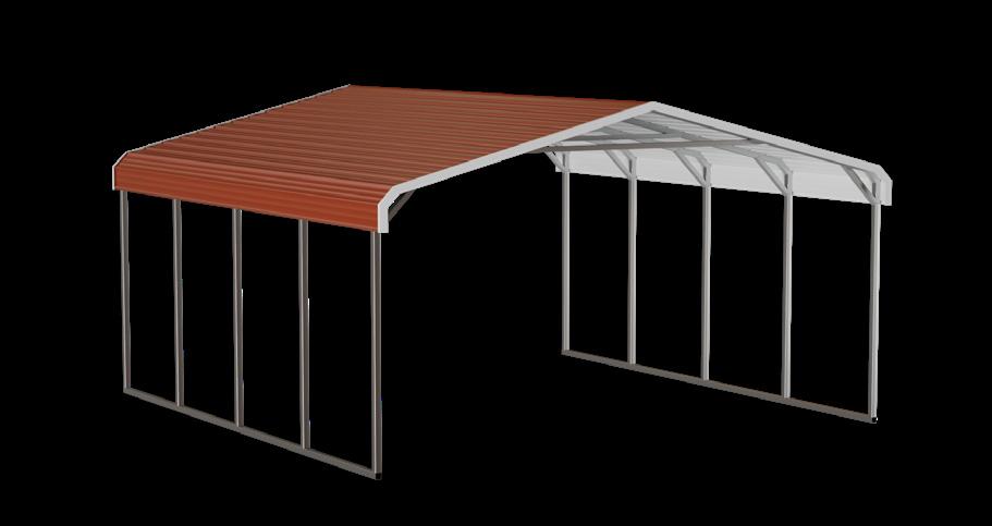 Standard carport features include the following: 14 gauge galvanized steel framing, 29 gauge metal roofing with 20 year Beckers paint system, framing spaced 5’ on center. Includes both peak and leg braces for additional strength and stability. Concrete Anchors or Rebar Anchors, and Earth Auger Anchors included in base price. Eagle Carports, Inc. is not responsible for stopping, or repairing leaks under base rails. Base leg height is 6’ tall. Please note: Eagle Carports, Inc. does not provide site work. Customers are required to contact local building/zoning departments about codes for permitting purposes before order finalization. *Alabama orders requiring higher loads will incur additional site-specific drawings. **Illinois will require modified generic drawings. STANDARD FEATURES