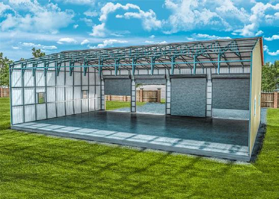 Commercial grade features include 14 gauge galvanized steel truss system with industry leading tubular knee bracing, 29 gauge metal roofing with 20 year Beckers paint system, framing spaced 5’ on center, concrete anchors or earth auger anchors are included in base price. Eagle Carports, Inc. is not responsible for stopping, or repairing leaks under base rails. Base leg height is 8’ tall. Please note: Eagle Carports, Inc. does not provide any site work. Truss design may vary slightly (from picture above). Customers are required to contact local building/zoning departments about codes for permitting purposes before order finalization. *Alabama orders requiring higher loads will incur additional site-specific drawings. Please call for more details.