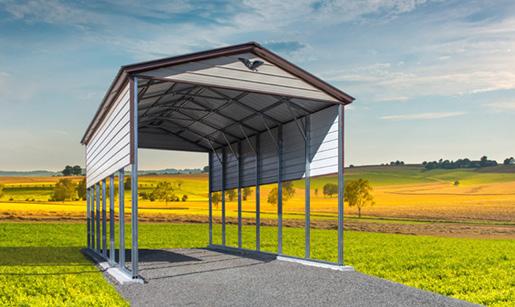 RV Covers feature include the following: 14 gauge galvanized steel framing, 29 gauge metal roofing with 20 year Beckers paint system, framing spaced 4’ on center. Includes both peak and leg braces for additional strength and stability. Concrete Anchors & Earth Auger Anchor Package are included in the base price. Eagle Carports, Inc. is not responsible for stopping, or repairing leaks under base rails. Base leg height is 12’ tall. Please note: Eagle Carports, Inc. does not provide site work. Customers are required to contact local building/zoning departments about codes for permitting purposes before order finalization.