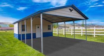 for 35PSF-140MPH (3 second gusts, not sustained) Pricing shown is for Risk Category I/Wind Exposure B. Please call for Risk Category II/Wind Exposure C options. Combo units feature both an open carport concept and a well designed storage space solution that offers 10’ of storage space. Combo units standard features include the following: two 24”x36” windows, 36”x80” walk-in door, one 8x8 garage door on side, 14 gauge galvanized steel framing, 29 gauge metal roofing with twenty year Beckers paint system, framing spaced 5’ on center. Combo units include both peak and leg bracing for additional strength and stability. Concrete Anchors or Rebar Anchors, and Earth Auger Anchors are included in base prices for units. Eagle Carports, Inc. is not responsible for stopping, or repairing leaks under base rails. Base leg height is 9’ tall. Please note: Eagle Carports, Inc. does not provide site work. SCAN FOR MORE INFO! We accept all major credit cards. 25 YEARS of QUALITY - All cement pads must have turn down footers. - Price does not include site preparation. - Lot must be cleared and leveled prior to installation. 20 YEAR *Warranty covers paint fade and chalking. Paint Warranty On roofing materials. © 2023 Copyright All Rights Reserved Eagle Carports, Inc. All prices are subject to change without notice 3.22.2023 FINANCING & RTO AVAILABLE INSTALLATION INCLUDED ON YOUR LEVEL LOT - Restrictions apply 90 DAY WORKMANSHIP WARRANTY FREE EAGLE W/PURCHASE OF GABLE END OR CLOSED END