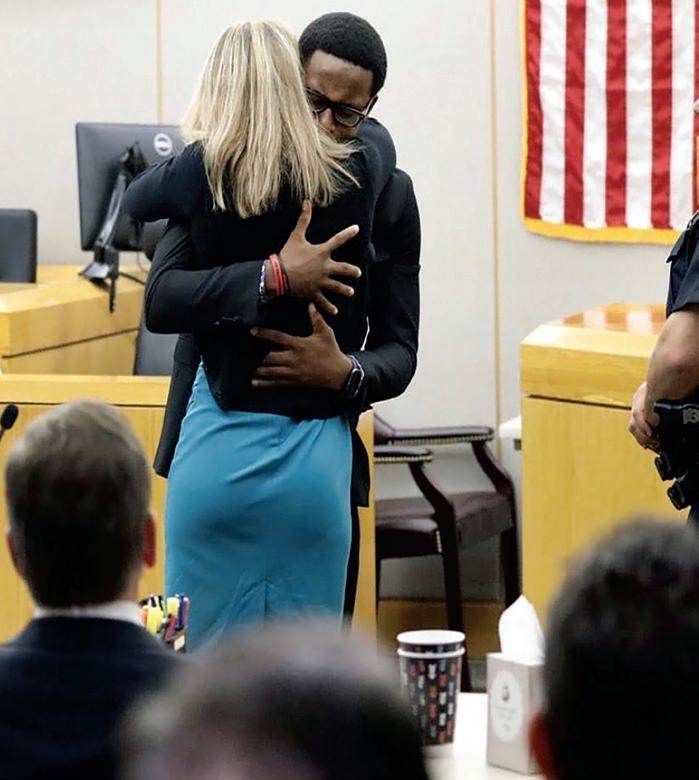 Amber Guyger was given a ten-year sentence for killing Botham Jean in his own apartment in 2018. At the end of the trial, Jean’s younger brother, Brandt, hugged Guyger and forgave her for his death. The family hopes that Guyger can reflect on her life and that her story will make the department better train their officers.