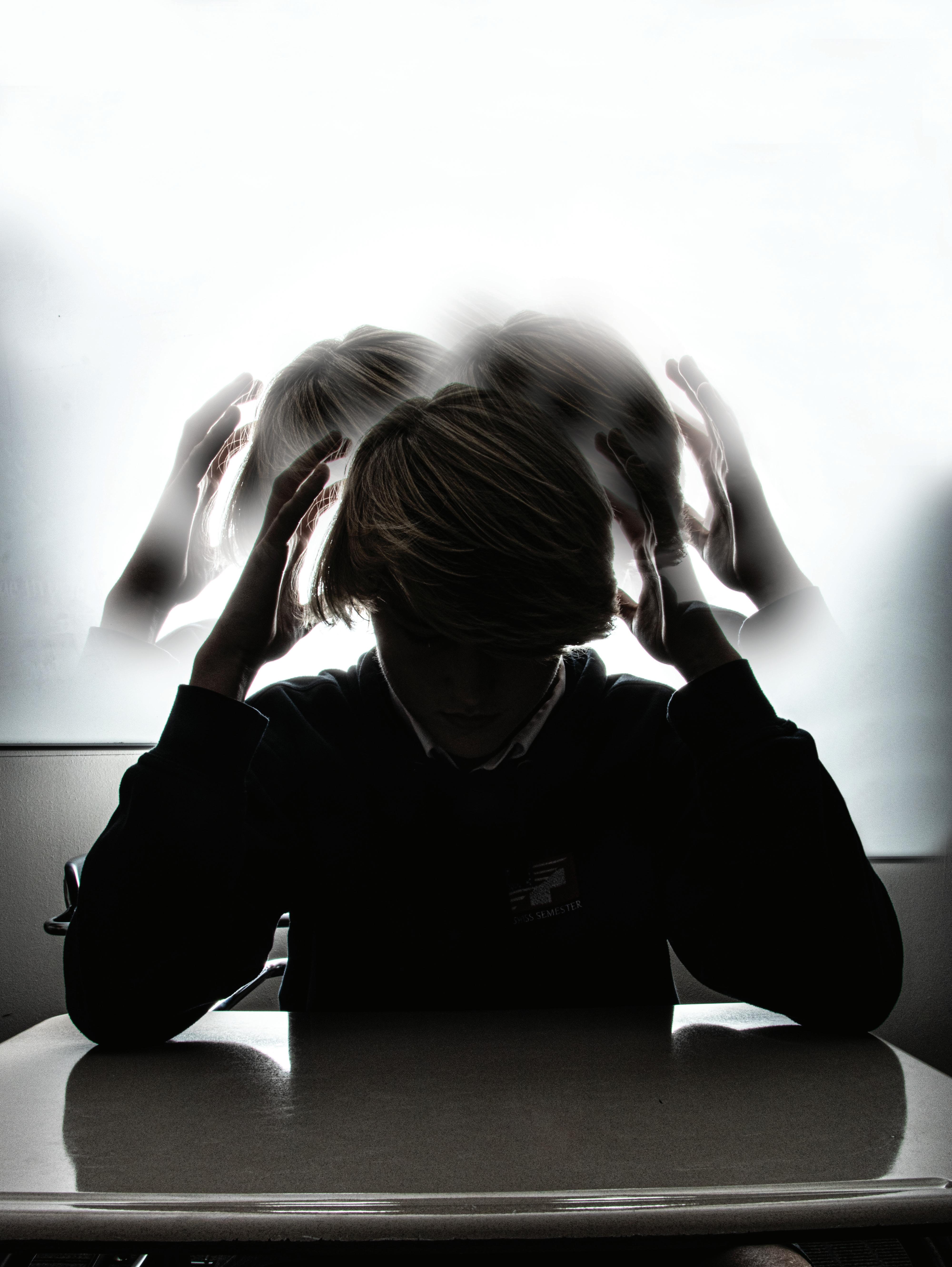 CLASSROOM CONFUSION Junior Luke McCabe sits at his desk and holds his head in exasperation. “Learning disabilities are a real struggle, especially in the stressful classes here at our school,” McCabe said. “The school is working to help these students.”