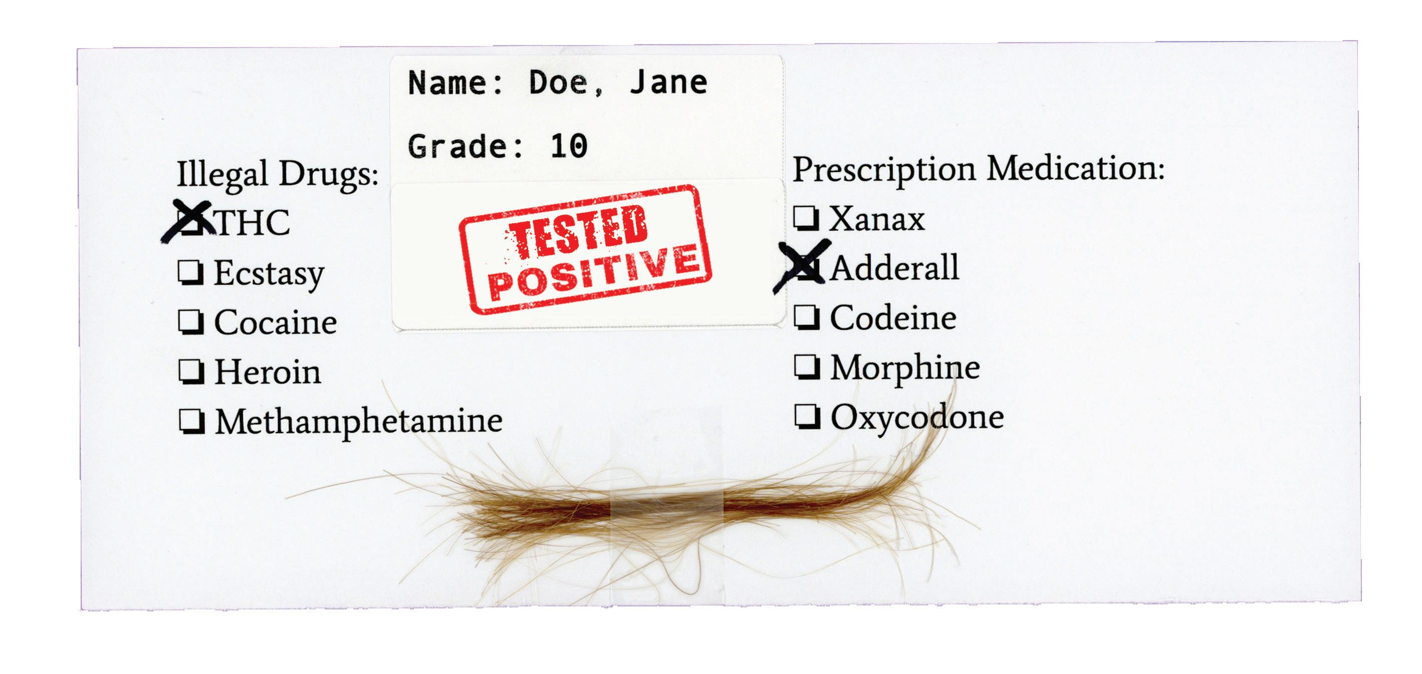 “The hair will go into a sample acquisition card initialed by the student and will then be sent to a lab to be tested.”