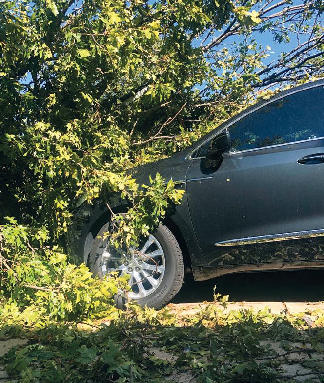 On her way to and from school, senior Sabrina Gies drives down a road of devastation, seeing debris and uprooted trees. For the past few weeks, she has come home every day to a backyard full of branches and a destroyed fence, yet her house had the least amount of damage compared to others in her neighborhood.