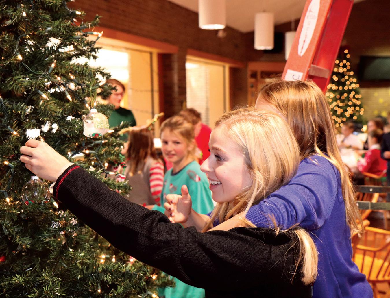 On Dec. 3, seniors and their fifth grade buddies participated in the annual tradition of decorating the Christmas tree in the Schoolhouse Commons with a multitude of personalized ornaments.