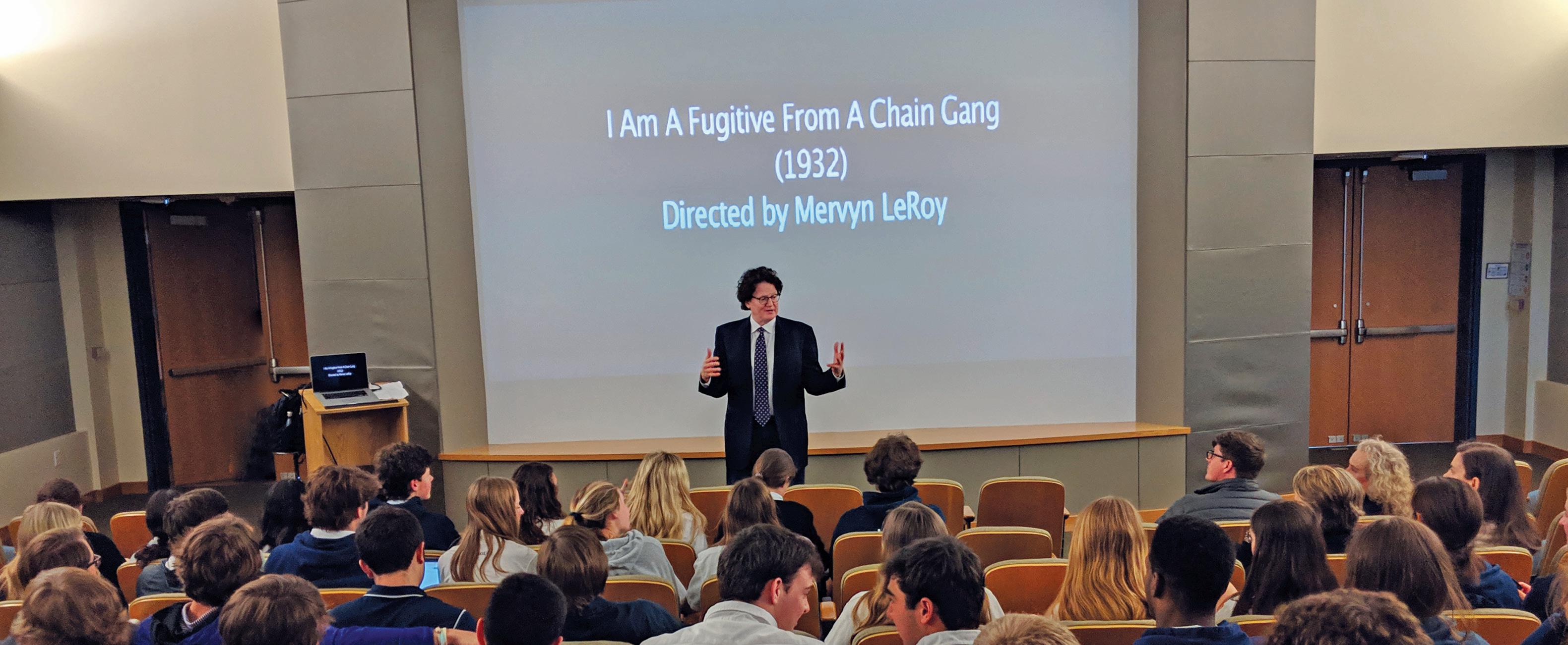 THAT’S A WRAP Yale Professor and Director of the screenwriting program, Marc Lapadula, lectures to a class in the Bray Theater about analyzing films on March 21. Lapadula’s lecture focused on the details of the film, “I Am a Fugitive from a Chain Gang.” “Mr. Lapadula is extremely wellversed in his film theory and film history,” film teacher Bobby Weiss said. “He showed the enthusiasm, eagerness and willingness to look at films in a critical manner.” photo courtesy of Cary
