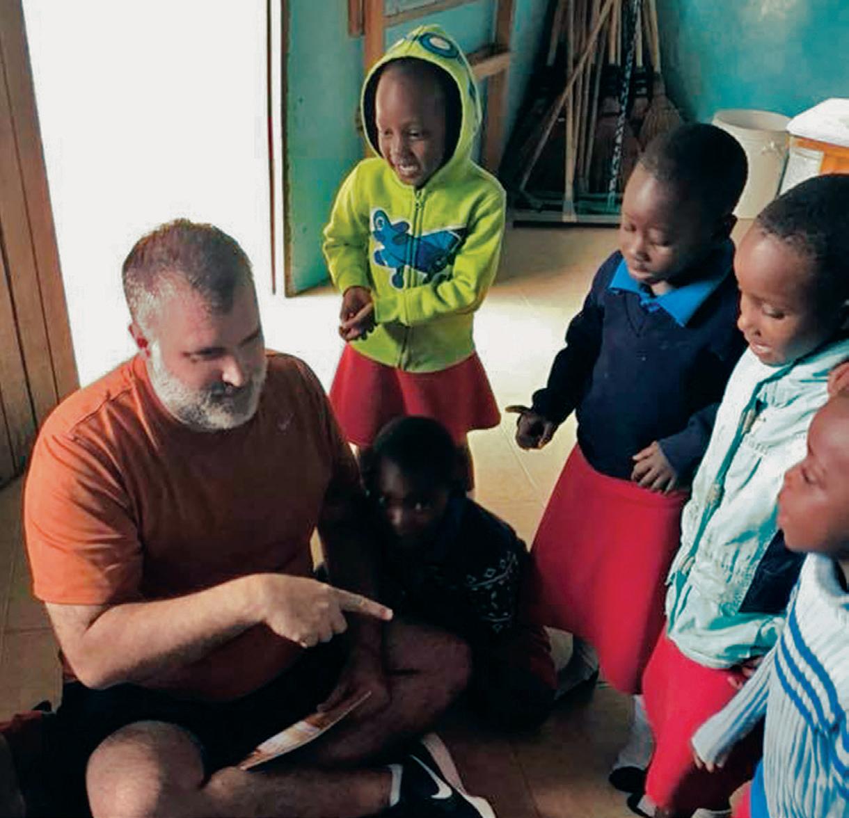 READ ALONG: AP World History Teacher Mark Salz entertains children at school by reading to them before starting their art class. “While I did this for just two days, [the children and I] had a whole ‘lotta fun,” Salz said. photo courtesy of ESD