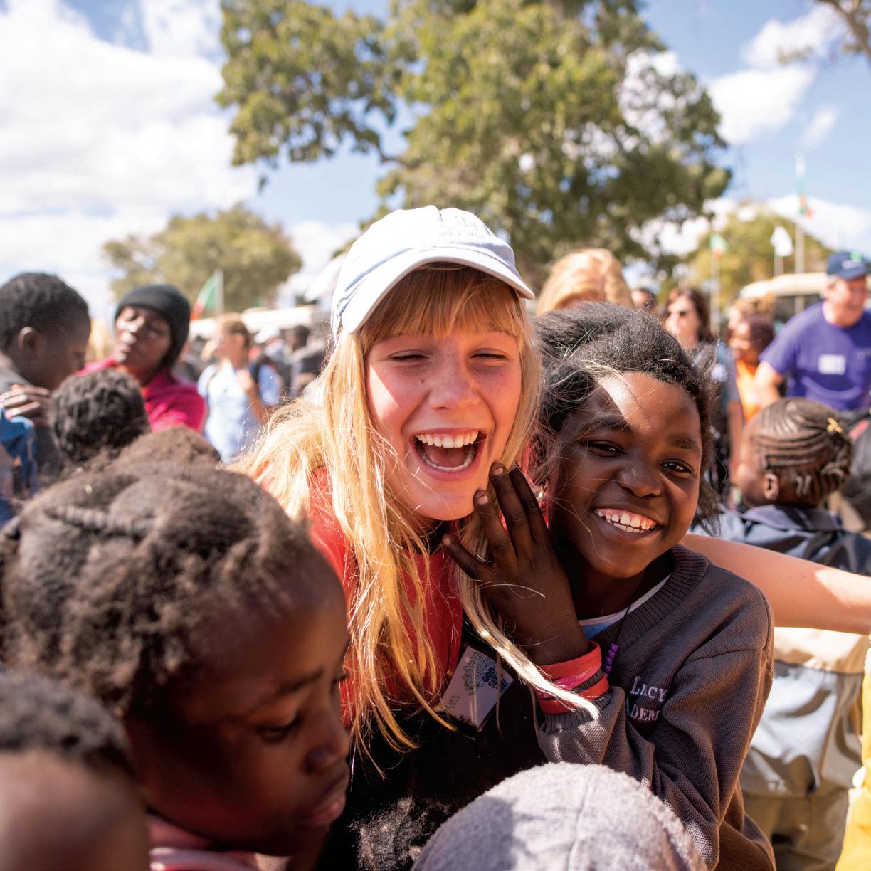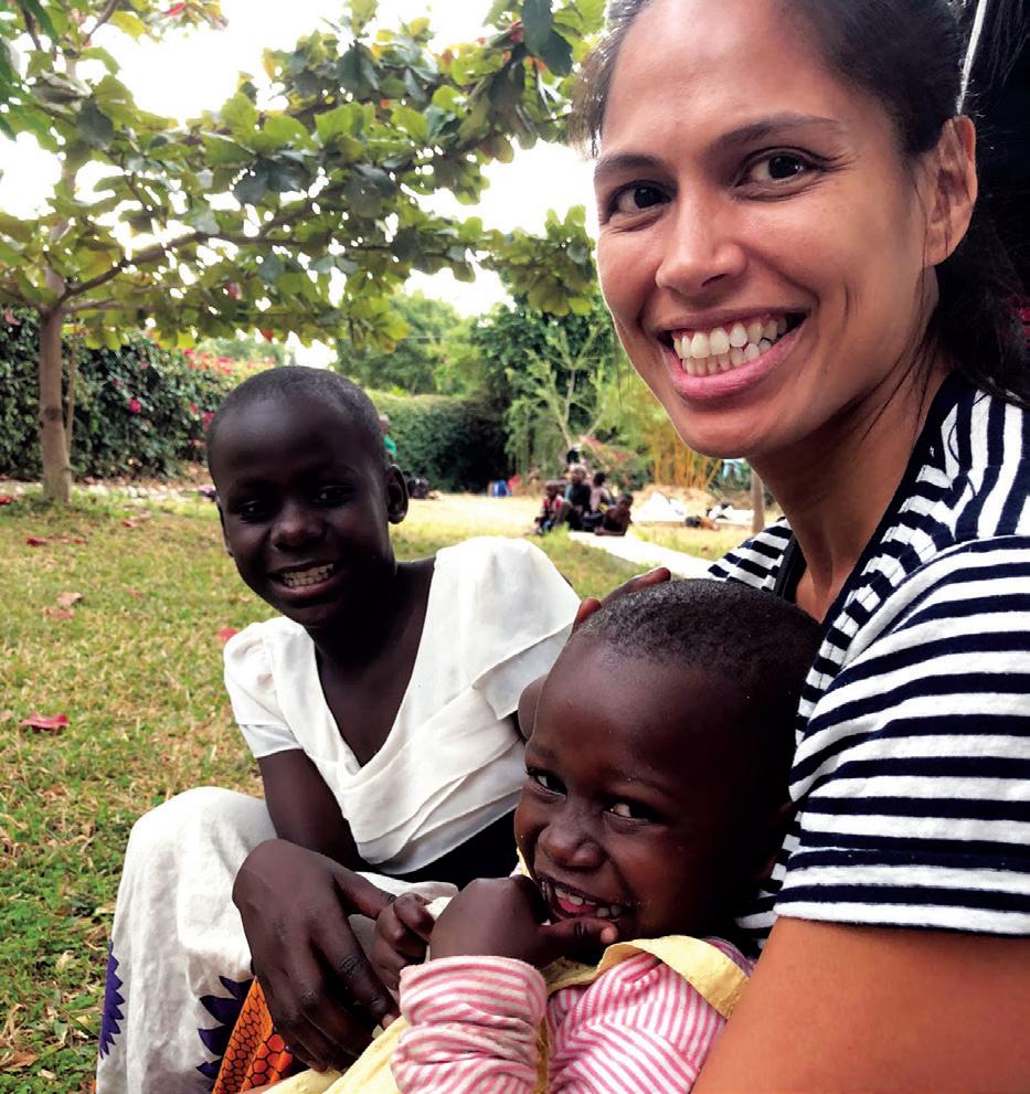 SMILES FOR MILES: Playing with the children living in the girls’ home, Administrative Assistant Kamalie Frank poses for a photo. “The girls were so curious and wanted to know where volunteers live, what they do for a living, what we eat in America and our travels to get to Africa,” she said. photo courtesy of ESD