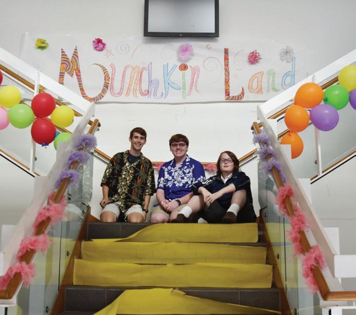 6. TRADING PLACES : Freshmen Christopher Hess and Sam Curtis stunt sophomore Austin Russell in the “Wizard of Oz” Homecoming theme reveal. The boys were representing the spirit theme day. “The Homecoming reveal was embarrassing because I had to dress up like a cheerleader,” Russell said. “Overall, though, it went well.”