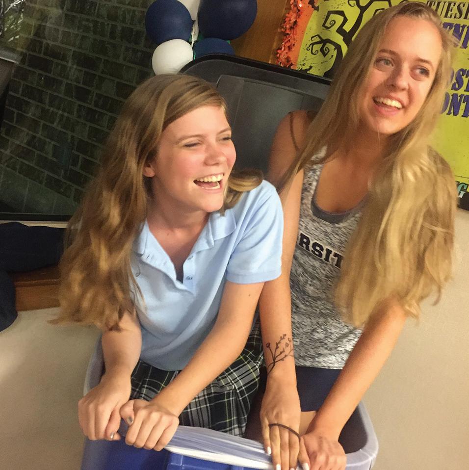 other. Juniors Annie Sawers and Claire Koonsman (bottom left) don surfer apparel on Surfer vs. Preppy day Oct. 23. Photos by Gillian Campbell MAY I HAVE THIS DANCE: Seniors Wesley Banks and Emma Cabrales dance to Frank Sinatra’s “Fly Me to the Moon” after being crowned by Head of Upper School Henry Heil at the Homecoming dance on Oct. 28. Photo by John Calvert
